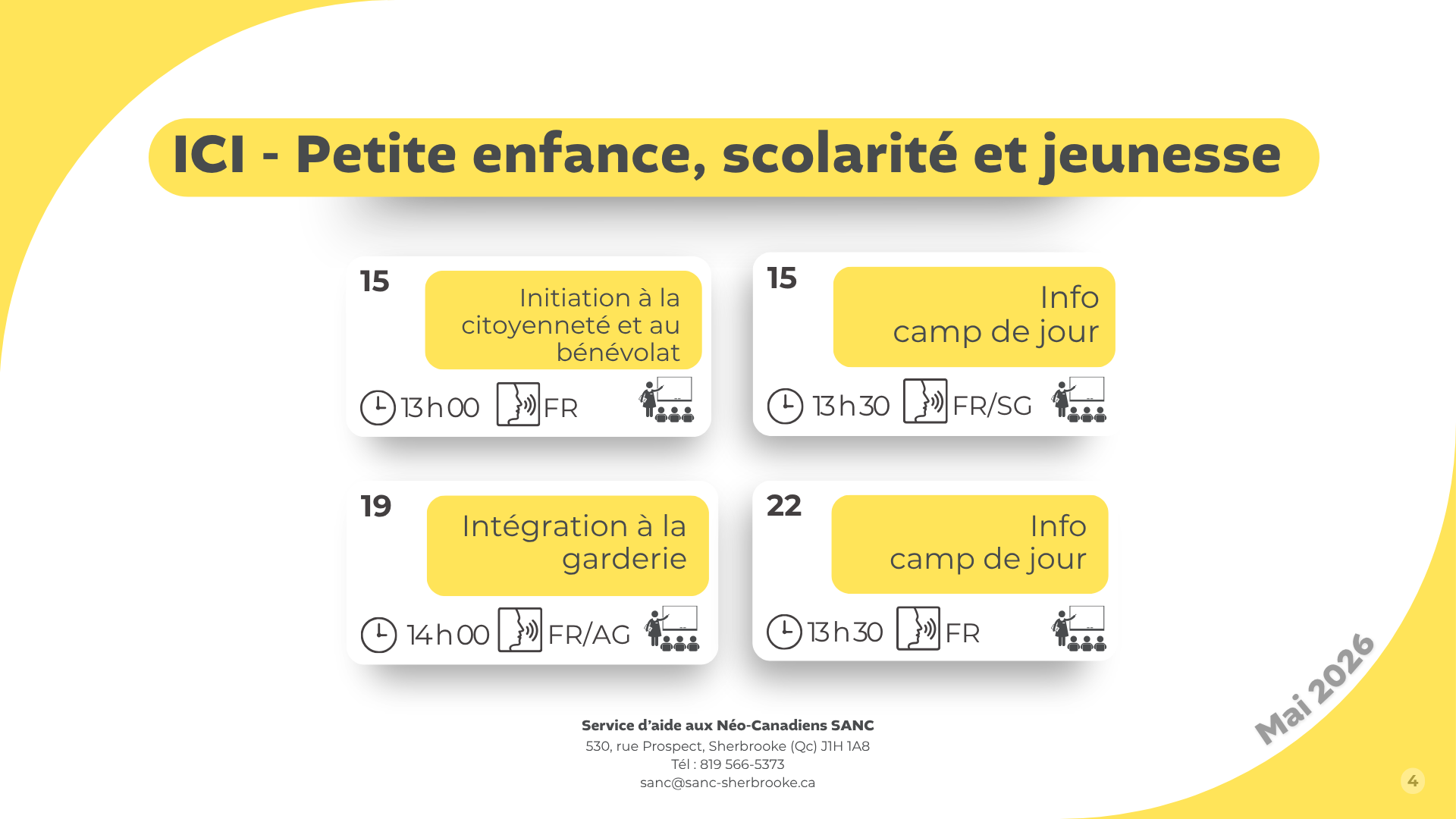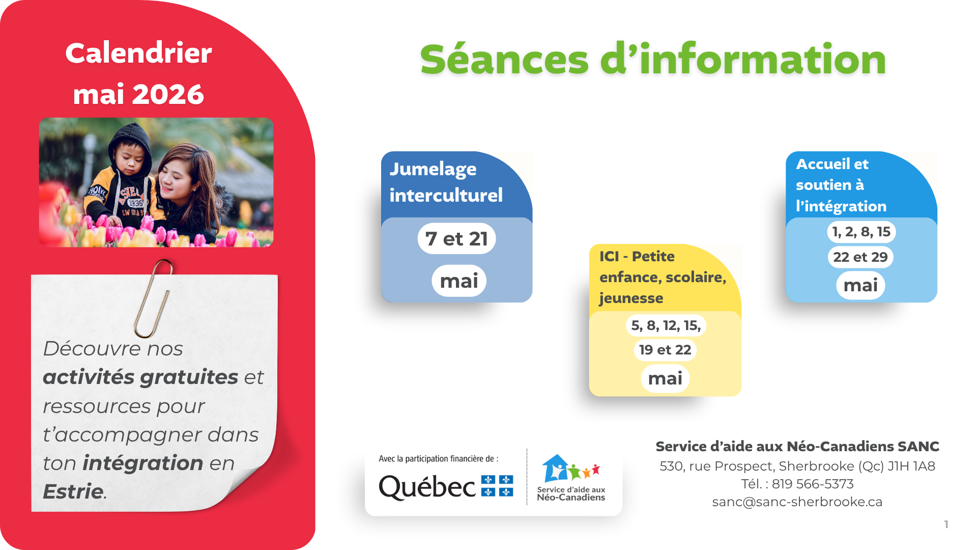 En mai, découvre nos activités et ressources pour t’accompagner dans ton intégration en Estrie.