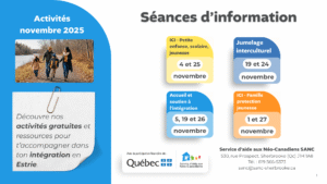 En novembre, découvre nos activités et ressources pour t’accompagner dans ton intégration en Estrie.